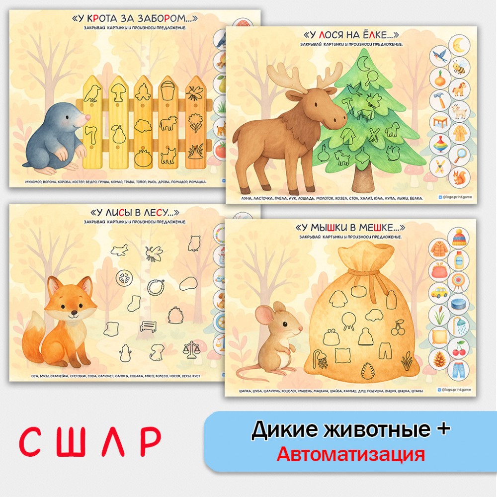• Дикие животные + автоматизация звуков. Логопедическое пособие.