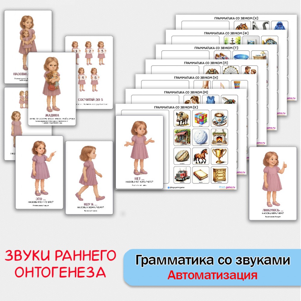 Грамматика со звуками раннего онтогенеза - логопедический альбом для автоматизации звуков.